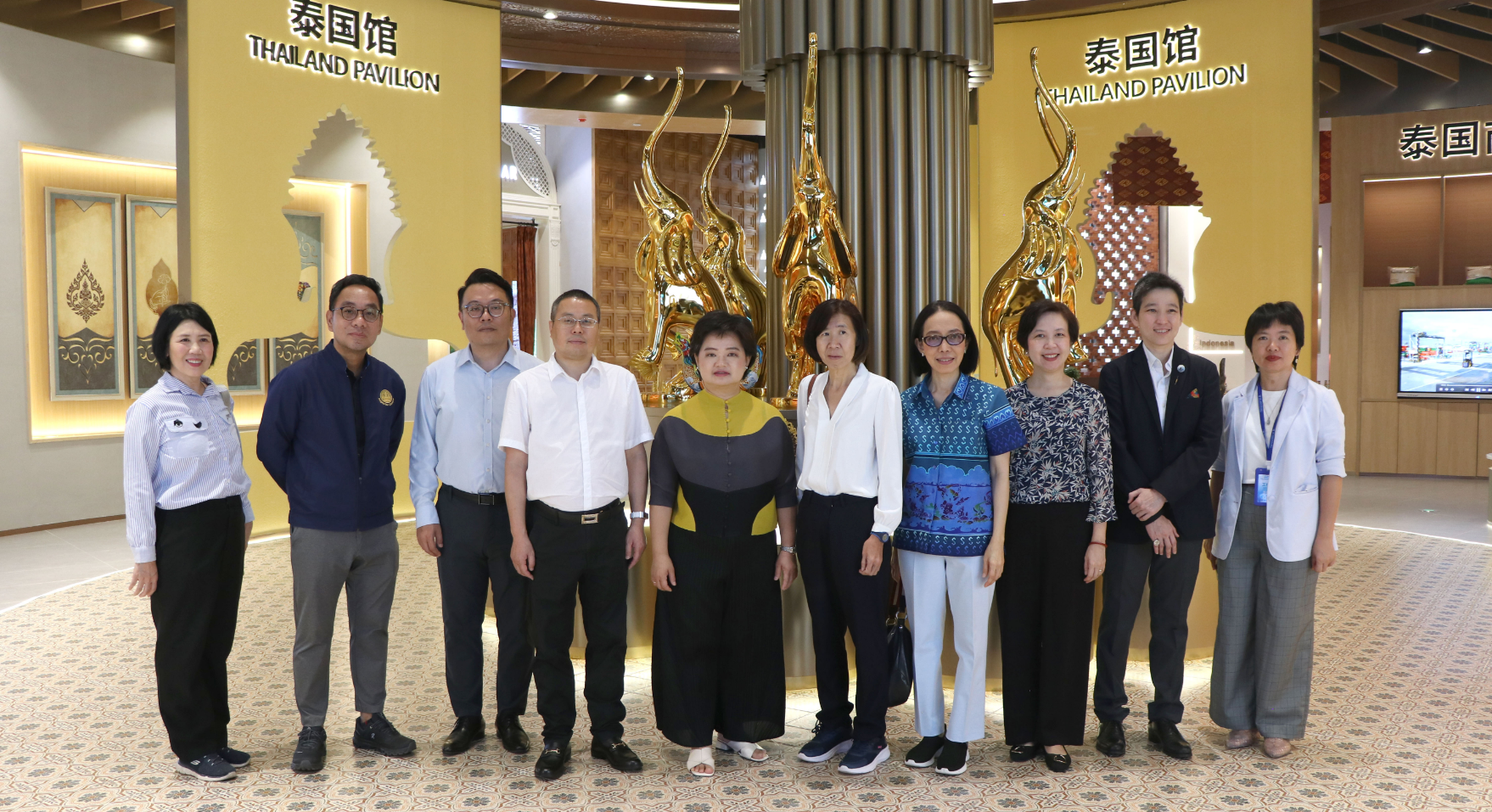 婉娜蓬·戈杜塔等泰國商業(yè)部巡視員、中國—東盟特色商品匯聚中心副總經(jīng)理盧春梅等陪同考察。