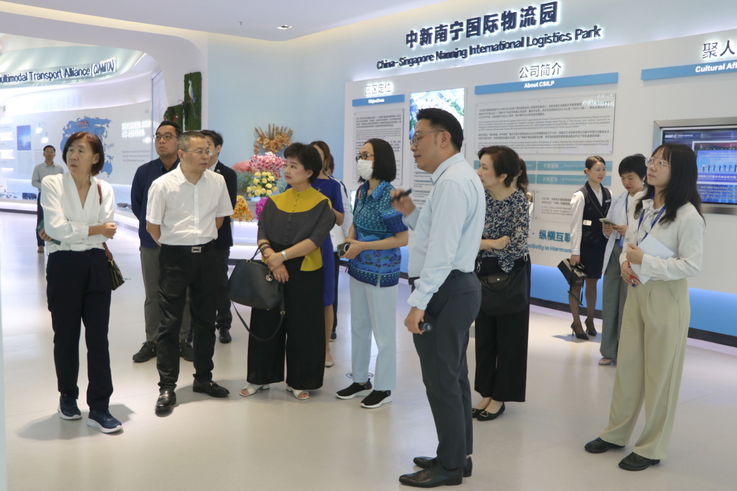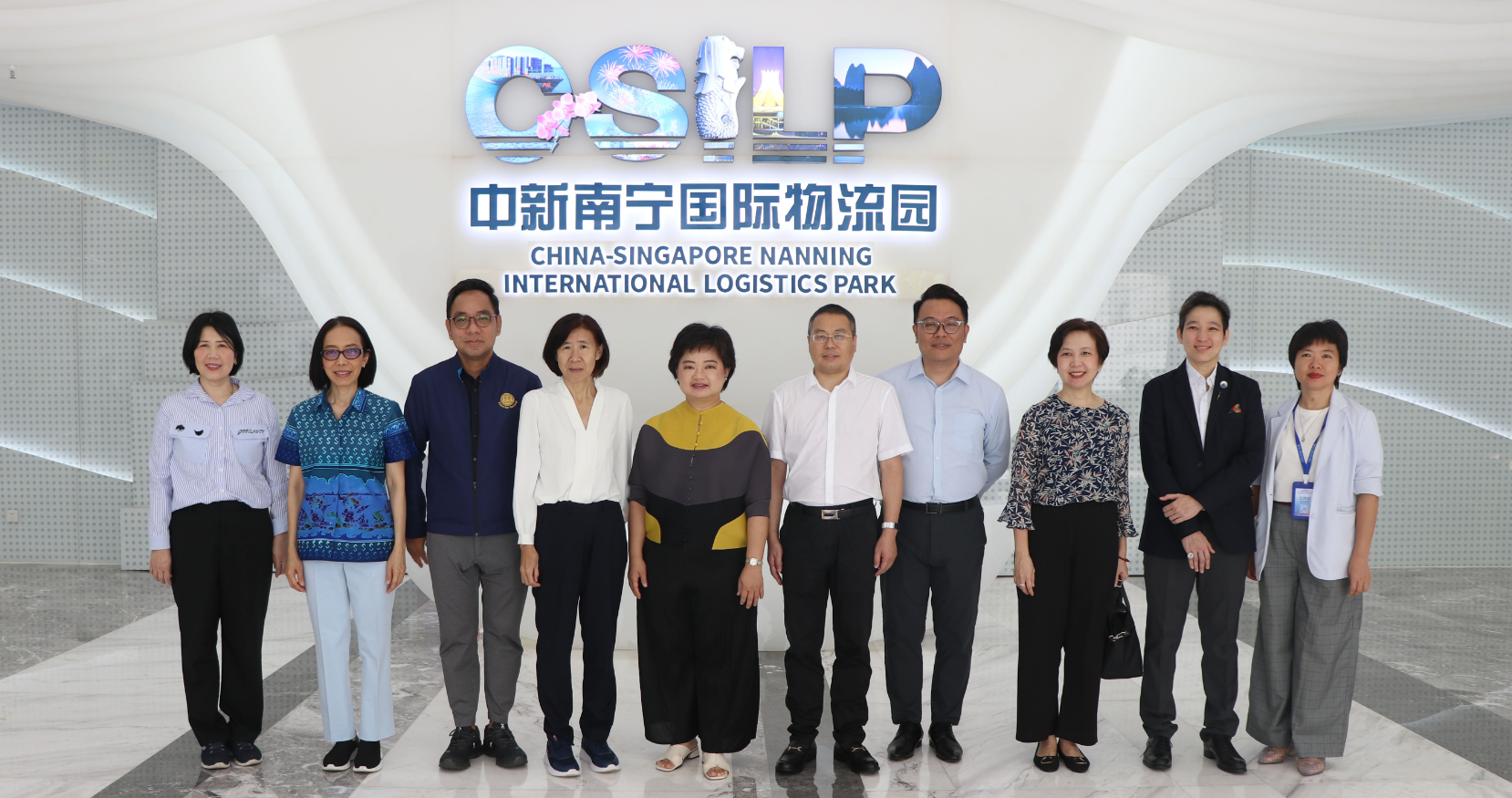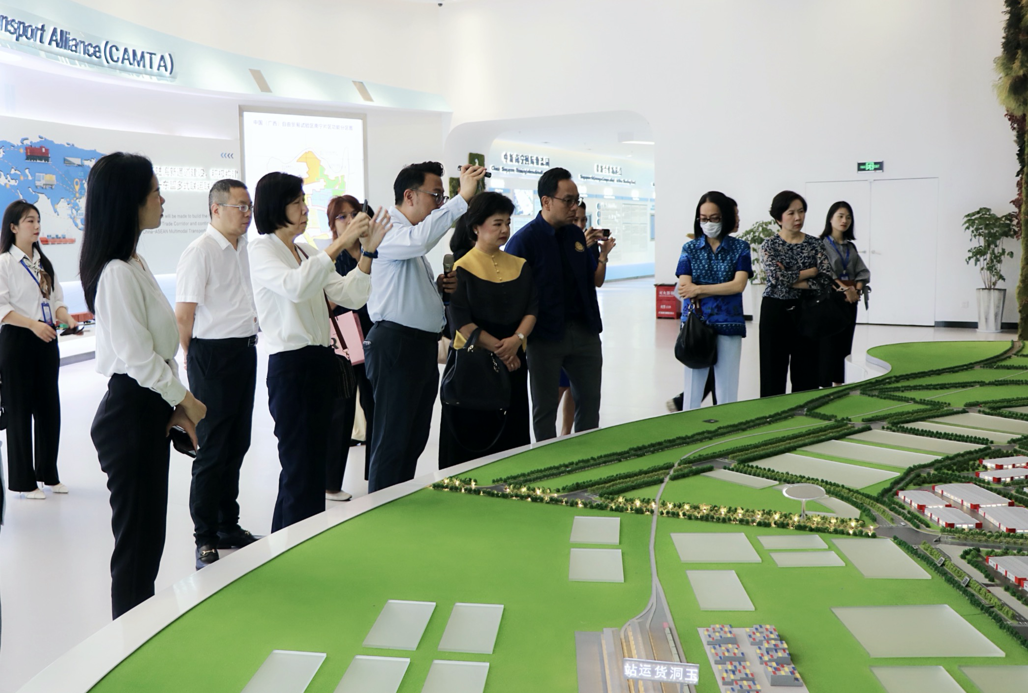 2023年6月30日,泰國商業(yè)部巡視組組長(副司級)素南塔.剛婉古吉女士一行到中新南寧國際物流園(以下簡稱“中新物流園”)、中國—東盟特色商品匯聚中心(以下簡稱“匯聚中心”)考察,就進(jìn)一步提升中泰兩國在經(jīng)貿(mào)領(lǐng)域的合作與交流展開探討。廣西新中產(chǎn)業(yè)投資有限公司副總經(jīng)理商紅熱情接待了巡視組一行。