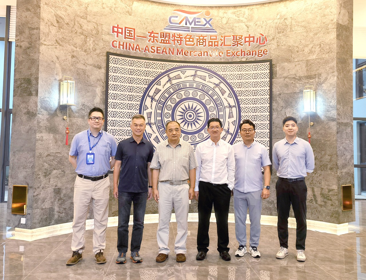 2023年8月9日,東盟貨運代理協(xié)會聯(lián)合會副會長查叻姆薩·甘查納瓦林、新加坡物流協(xié)會首席執(zhí)行官胡美祿在受邀到廣西南寧參加“中國—東盟跨境供應(yīng)鏈創(chuàng)新發(fā)展論壇”期間,作為聯(lián)盟發(fā)起成員單位之一,特別到中國—東盟特色商品匯聚中心(以下簡稱“匯聚中心”)參觀考察,廣西新中產(chǎn)業(yè)投資有限公司總經(jīng)理施國維對兩位嘉賓的到訪表示熱烈的歡迎。