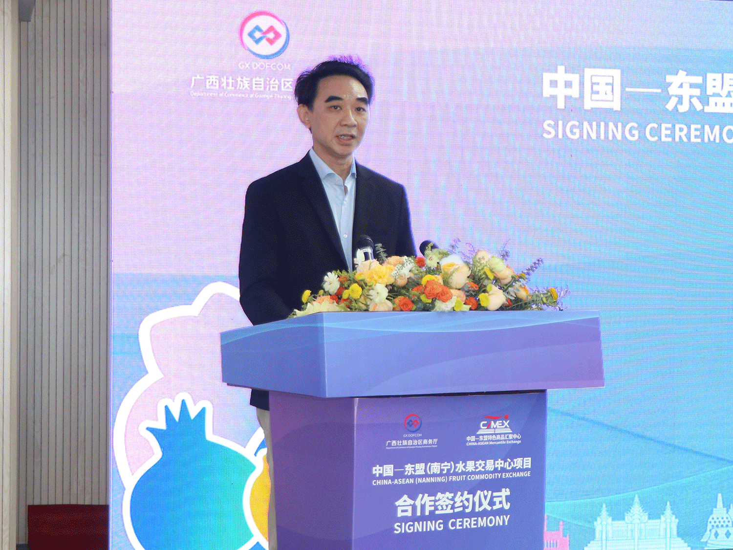 2023年11月9日,中國—東盟(南寧)水果交易中心項目合作簽約儀式在廣西壯族自治區(qū)商務(wù)廳舉行,標(biāo)志著項目合作取得實質(zhì)性進展、項目建設(shè)步入新的發(fā)展階段。