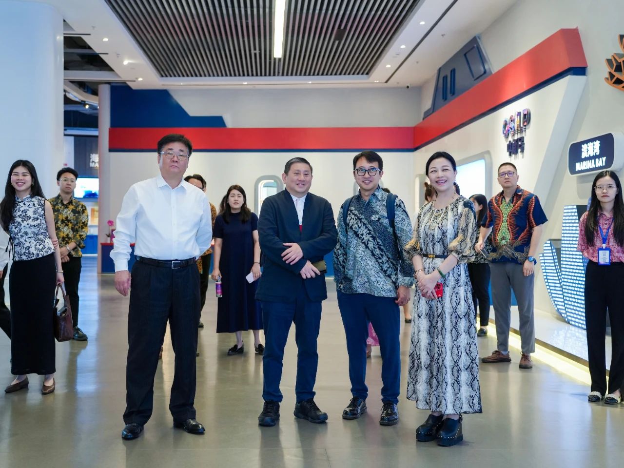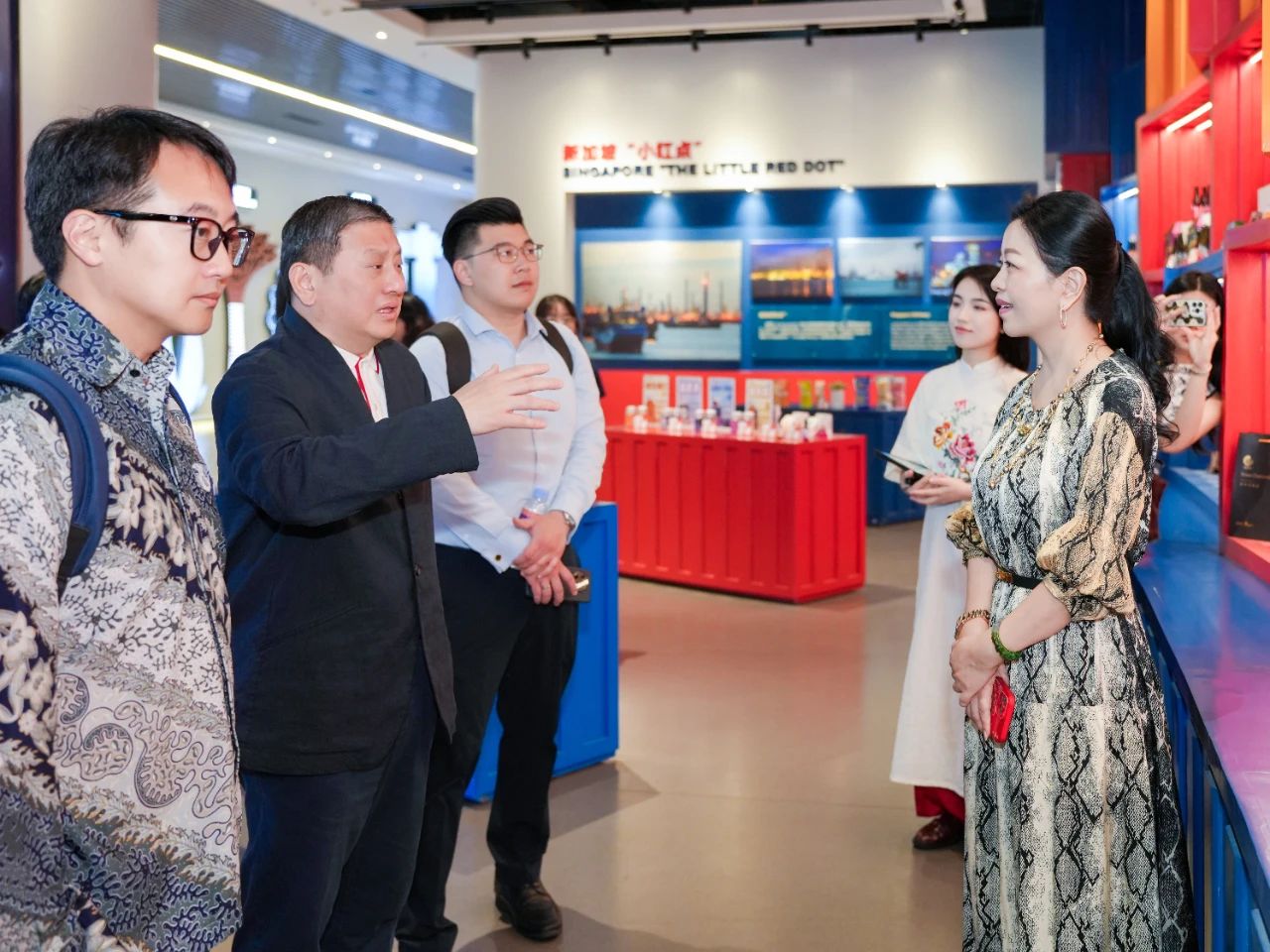 步入?yún)R聚中心,陳海泉大使便被新加坡展館門口的魚尾獅所吸引,特意駐足拍攝。進(jìn)入展館后,考察組沉浸式體驗(yàn)了璀璨星空走廊、垂直綠化的花園城市與組屋街區(qū)等場(chǎng)景,紛紛表示很開心能在廣西看到一個(gè)多維度呈現(xiàn)“獅城”獨(dú)特風(fēng)貌的地方,漫步其中恍若回到新加坡,倍感親切。同時(shí),考察組充分認(rèn)可了匯聚中心線上線下相結(jié)合的創(chuàng)新理念,并就未來在經(jīng)貿(mào)、物流等領(lǐng)域的合作與匯聚中心團(tuán)隊(duì)進(jìn)行了交流并達(dá)成共識(shí)。