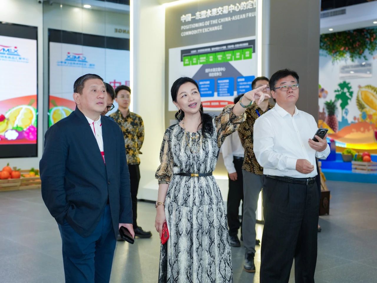 考察組還走進(jìn)水果交易中心展廳,就中國(guó)與東盟水果貿(mào)易情況進(jìn)行了溝通交流。陳海泉大使表示,此次到訪認(rèn)識(shí)到了中國(guó)南北方水果的差異,也了解了廣西作為中國(guó)水果第一大省區(qū)的獨(dú)特優(yōu)勢(shì),在廣西建設(shè)水果交易中心大有可為。新加坡雖不是水果主要生產(chǎn)國(guó),但依托世界重要的轉(zhuǎn)口港基礎(chǔ)設(shè)施及先進(jìn)的冷鏈物流體系,可在水果精深加工、先進(jìn)保鮮技術(shù)等方面進(jìn)行深化協(xié)作,希望借助水果交易中心,高效銜接中國(guó)與東盟水果產(chǎn)業(yè)鏈資源,助推更多優(yōu)質(zhì)果品通過新加坡更好地走向國(guó)際,共享全球廣闊市場(chǎng)。