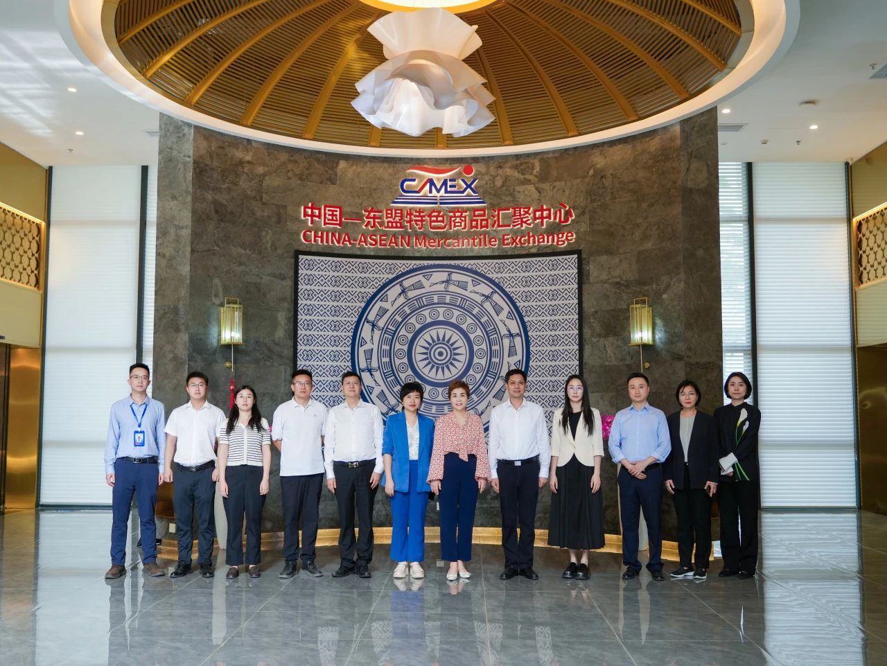 2025年4月16日,重慶市貿(mào)促會(huì)會(huì)長(zhǎng)鄧琳一行在廣西貿(mào)促會(huì)副會(huì)長(zhǎng)劉樹義的陪同下到中國(guó)—東盟特色商品匯聚中心(簡(jiǎn)稱“匯聚中心”)參觀調(diào)研并進(jìn)行座談交流。中國(guó)—東盟特色商品匯聚中心副總經(jīng)理盧春梅熱情接待了調(diào)研組。