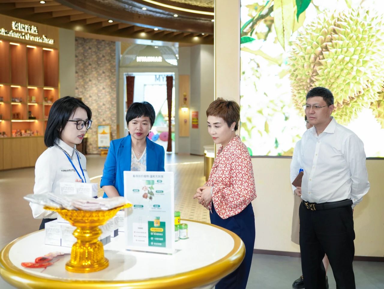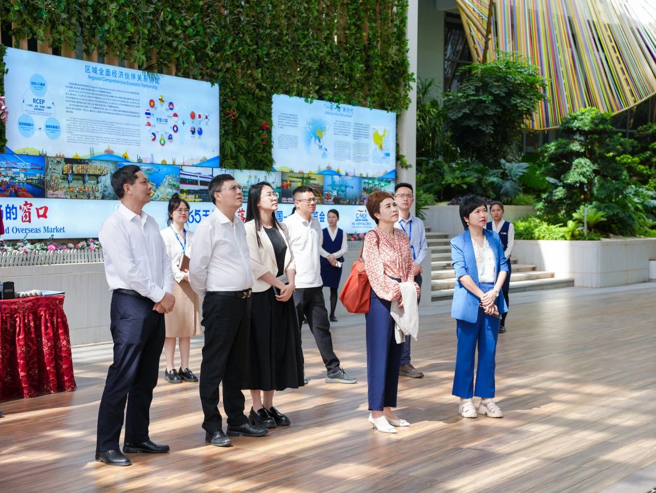 在匯聚中心參觀各主題展館的過程中,調(diào)研組詳細(xì)了解項(xiàng)目如何通過以“物”引“流”、以“物”促“流”的方式,搭建中國(guó)與東盟、RCEP其他區(qū)域國(guó)家乃至“一帶一路”沿線重要國(guó)家經(jīng)貿(mào)往來線上線下B2B、B2C一站式首選平臺(tái),成為外國(guó)商家進(jìn)入中國(guó)市場(chǎng)的首站,以及中國(guó)商家拓展海外市場(chǎng)的窗口。