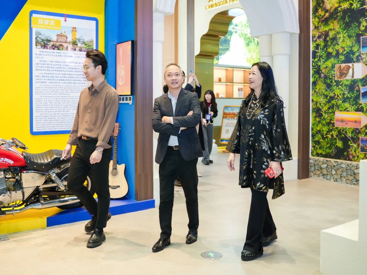 福安來商務(wù)領(lǐng)事表示,一走進(jìn)匯聚中心,迎面而來的熟悉場景令他不禁想起首次到訪的情景。他指出,匯聚中心充分結(jié)合RCEP區(qū)域國家乃至“一帶一路”沿線重要國家的人文風(fēng)俗元素,完美融入每一個(gè)主題展館中,使得各館各具特色,令人印象深刻。尤其是菲律賓館,里面壯觀的沙丁魚風(fēng)暴、搖曳的椰林沙灘、原生態(tài)茅草屋與歡快的吉他,以及獨(dú)具菲律賓本國特色的窗戶樣式等,都精準(zhǔn)還原了當(dāng)?shù)氐娘L(fēng)貌,讓他倍感親切,仿若置身家鄉(xiāng)。他相信很多到訪匯聚中心的嘉賓都會與他有著同樣的感受——這里的美好一見傾心、再見難忘,如陳釀般令人回味悠長。