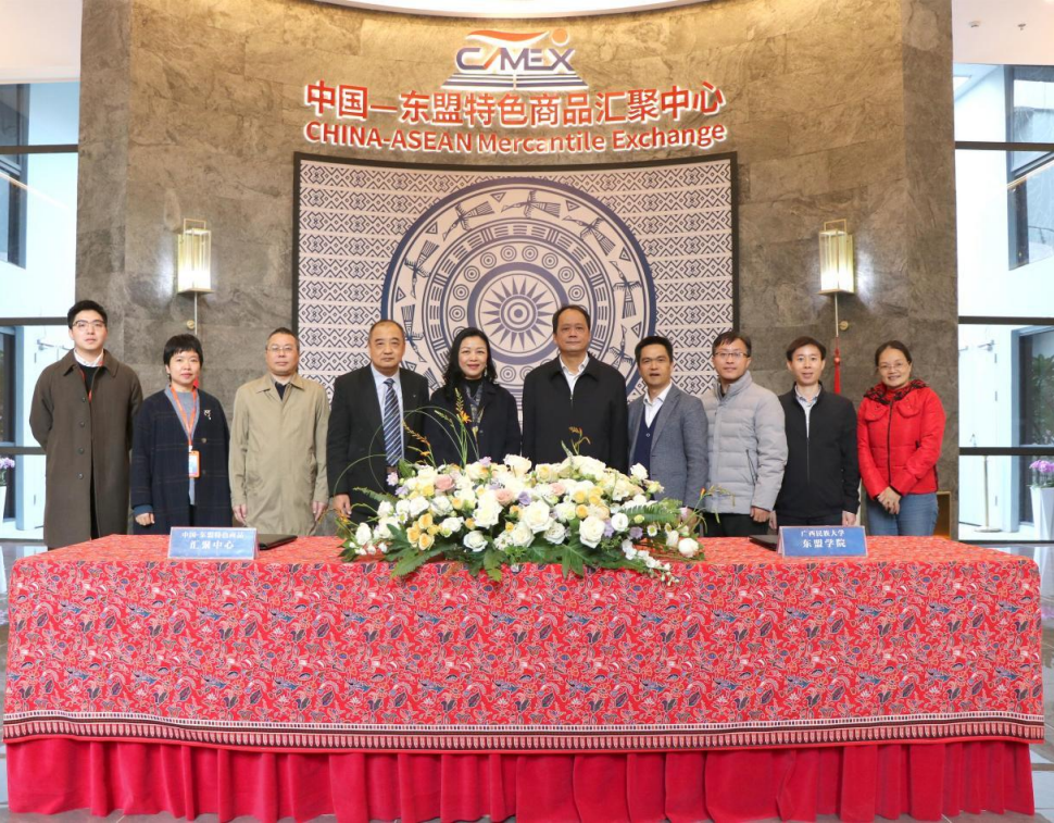 廣西民族大學(xué)東盟學(xué)院書(shū)記、常務(wù)副院長(zhǎng)、中國(guó)—東盟區(qū)域國(guó)別研究院院長(zhǎng)葉興藝,廣西民族大學(xué)東盟學(xué)院院長(zhǎng)助理、東南亞移民與華僑華人研究中心主任陳丙先,廣西民族大學(xué)東盟學(xué)院新加坡研究所所長(zhǎng)楊靜林,廣西民族大學(xué)東盟學(xué)院辦公室主任劉桂青,廣西新中產(chǎn)業(yè)投資有限公司、中國(guó)—東盟特色商品匯聚中心總經(jīng)理施國(guó)維,廣西新中產(chǎn)業(yè)投資有限公司副總經(jīng)理商紅,中國(guó)—東盟特色商品匯聚中心副總經(jīng)理盧春梅等參加了簽約儀式。