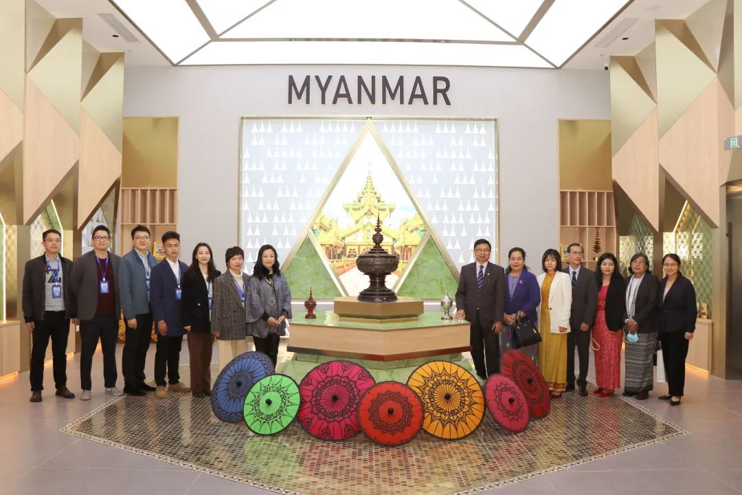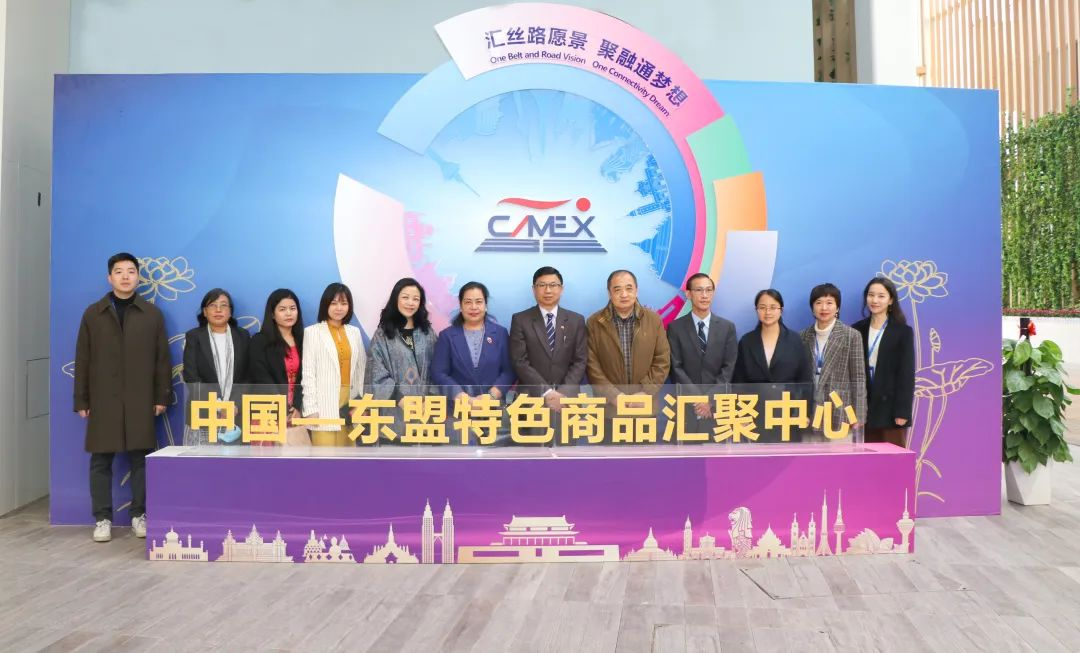 緬甸駐南寧總領(lǐng)事館參贊凱寧素、中新南寧國際物流園、中國—東盟特色商品匯聚中心總經(jīng)理施國維、中國—東盟特色商品匯聚中心副總經(jīng)理盧春梅等陪同考察。