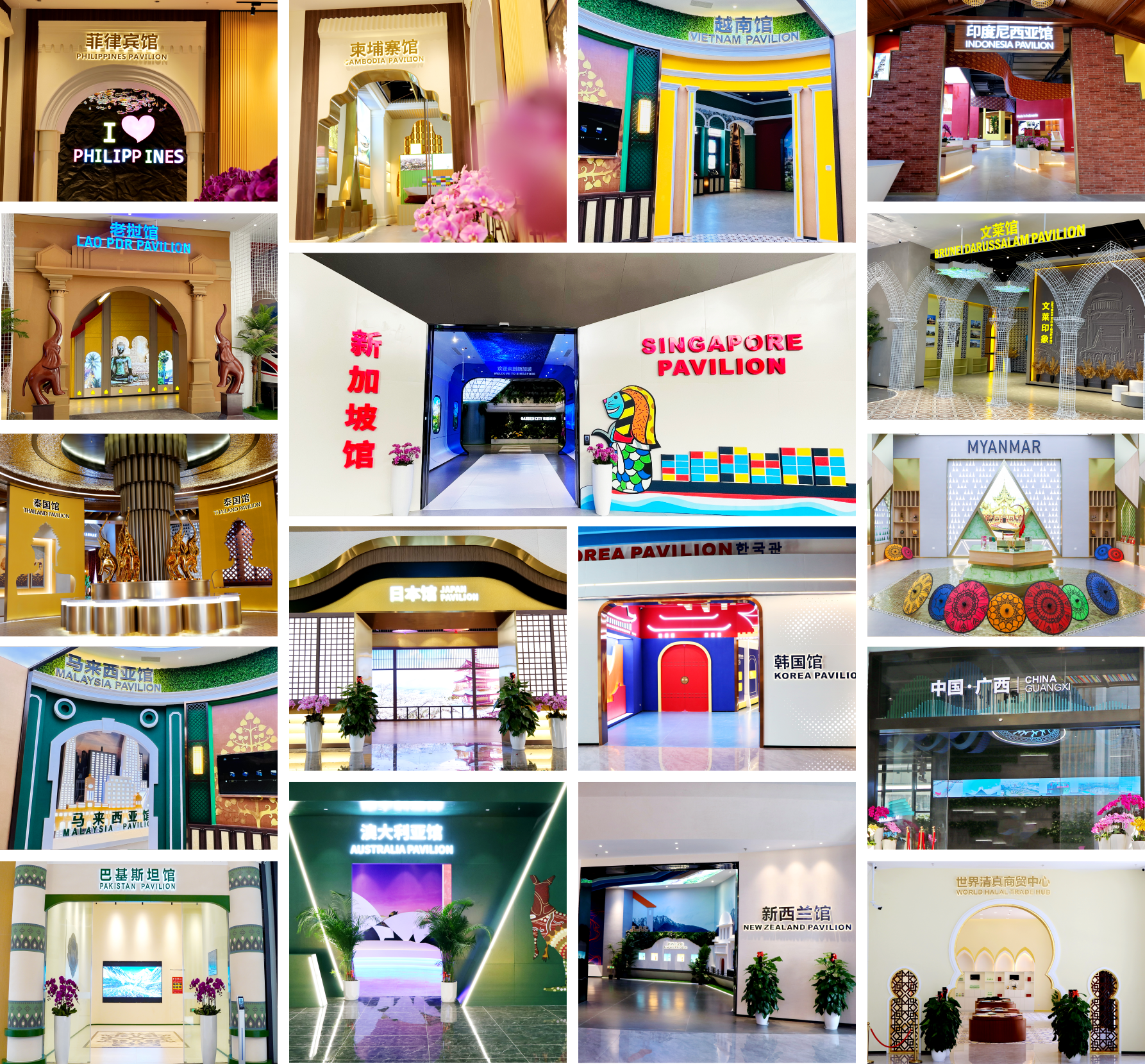 匯聚中心共建設(shè)有17個(gè)主題館。其中10個(gè)東盟國(guó)家主題館(文萊館、柬埔寨館、印度尼西亞館、老撾館、馬來(lái)西亞館、緬甸館、菲律賓館、新加坡館、泰國(guó)館、越南館),1個(gè)地方館(廣西館),1個(gè)特色館(世界清真商貿(mào)中心),“一帶一路”沿線首個(gè)國(guó)家主題館--巴基斯坦館以及RCEP其他區(qū)域國(guó)家主題館(日本館、韓國(guó)館、澳大利亞館、新西蘭館),通過(guò)提取各國(guó)特色建筑景觀和人文風(fēng)俗等經(jīng)典元素,以沉浸式的體驗(yàn)呈現(xiàn)各國(guó)特色商品,不僅促進(jìn)了國(guó)際經(jīng)貿(mào)合作與交流,還為國(guó)內(nèi)外客戶提供相應(yīng)的配套服務(wù),例如小語(yǔ)種翻譯、公司注冊(cè)、投融資服務(wù)、資源配對(duì)、人才培訓(xùn)、品牌運(yùn)營(yíng)等 ,以此吸引更多的國(guó)內(nèi)外商家到廣西、或通過(guò)廣西進(jìn)入中國(guó)其他省份投資興業(yè);我們也希望通過(guò)所搭建的平臺(tái),幫助更多有意向到東盟乃至RCEP其他區(qū)域國(guó)家發(fā)展的商家提供省時(shí)省力省錢的一站式參與國(guó)際市場(chǎng)的發(fā)展機(jī)遇。