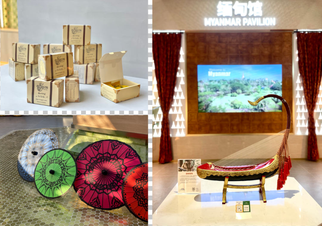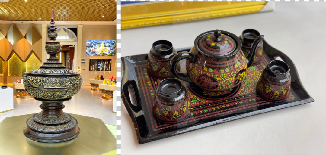 在緬甸館,覺梭登總領(lǐng)事親自就展館陳列的特色產(chǎn)品及傳統(tǒng)手工藝品進行了詳細地介紹。他表示,緬甸有很多特色產(chǎn)品,比如木雕及珠寶、玉石、勃生傘、草帽、籃筐、席子、茶葉、醬料、香米、啤酒等,深受大眾喜愛,尤其是緬甸蒲甘的漆器。漆器制作過程中所用到的漆料和其他顏料都是純天然的,非常環(huán)保。作為緬甸人民生活中不可或缺的工藝品,漆器因其精美的外形、做工考究、實用的功能得到世界各國旅游者的青睞。他認為,匯聚中心緬甸館無論是在設(shè)計上還是產(chǎn)品陳列上,都能讓大眾對緬甸有更深刻的認識,滿足人們對緬甸的探索之心??傤I(lǐng)事的精彩介紹讓大家對緬甸文化有了進一步的了解,同時也吸引了其他到館嘉賓的駐足聆聽。